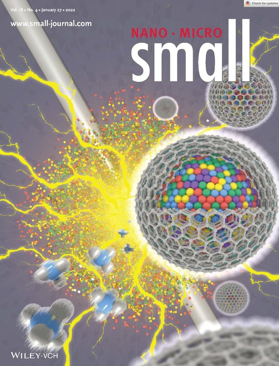 近日,东北大学材料学院李逸兴、张雪峰课题组采用自主设计的直流电弧等离子体放电设备,首次合成了具有核@壳包覆结构的高熵合金@石墨纳米胶囊材料(HEA@C),通过高熵合金的高熵效应实现了界面匹配与极化性能的调控。相关研究成果以“Quinary High-Entropy-Alloy@Graphite Nanocapsules with Tunable Interfacial Impedance Matching for Optimizing Microwave Absorption”为题作为Front Cover(封面)发表在Small上(Small 18(4), 2022, 2107265)。