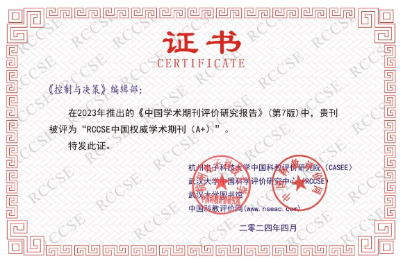 近日,武汉大学中国科学评价研究中心(RCCSE)公布了最新一期的学术期刊评价结果《中国学术期刊评价研究报告(第7版)》。我校的《控制与决策》期刊在信息与系统科学相关工程与技术学科37种期刊中排名第2,被评为“RCCSE中国权威学术期刊(A+)”,本学科仅有前2名期刊入选A+等级。