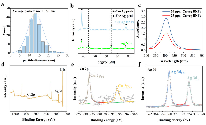 在本研究中,作者采用PVP-PVA作为保护剂,通过化学还原法高效合成Cu-Ag BNP水溶胶,有效解决纳米颗粒团聚和双金属混相的难题。所合成的金属纳米颗粒具有均匀的粒径分布,粒径范围10-15 nm,平均粒径尺寸13.1 nm。Cu-Ag BNP杀菌剂不仅展现了高效的杀菌功能(固着SRB细胞杀菌率约99.999%),而且具有优异的缓蚀性能(X80钢缓蚀率超90%)。该Cu-Ag BNP杀菌剂不仅解决了纳米金属颗粒易团聚问题,同时展现了优异的杀菌和缓蚀双功能性,为油气储运等行业中的微生物腐蚀控制提供可持续的解决方案,具备广泛的工业化应用前景。
