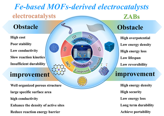 论文系统地综述了提高铁基金属有机骨架化合物(MOFs)衍生的非贵金属电催化剂催化活性的策略,详细讨论其活性位点、催化机理及相应的特性,并展望了此类电催化剂在锌空气电池(ZABs)中的可持续性研究、面临的挑战和发展前景。这项工作为铁基MOFs衍生的氧电催化剂的靶向优化提供了参考,并为高性能ZABs的设计、构建和跨越式发展提供了指导。研究成果的发表标志着秦皇岛分校研究生培养质量迈上新台阶。该项研究受到了国家自然科学基金和河北省研究生创新资助项目的支持。