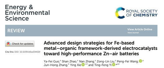 近日,秦皇岛分校材料工程专业硕士研究生郭亚飞在伊廷锋教授的指导下,以东北大学为第一作者单位和通讯单位,在英国皇家化学会的旗舰期刊、能源材料领域国际顶级学术期刊Energy & Environmental Science上发表论文“Advanced design strategies for Fe-based metal-organic framework-derived electrocatalysts toward high-performance Zn-air batteries”(用于高性能锌空气电池的铁基金属有机骨架衍生电催化剂的先进设计策略)。