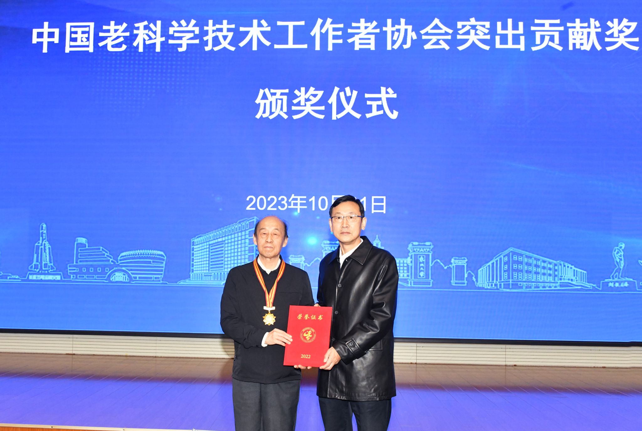 10月31日,辽宁老科技工作者协会在东北大学主楼824室为王国栋院士颁发2023年中国老科学技术工作者协会突出贡献奖。辽宁省人大常委会原党组成员、副主任,辽宁省老科技工作者协会会长张铁民,东北大学副校长王兴伟出席颁奖仪式。宣传部、发展规划与学科建设处、科学技术研究院有关负责同志,轧制技术及连轧自动化国家重点实验室师生代表参加仪式。