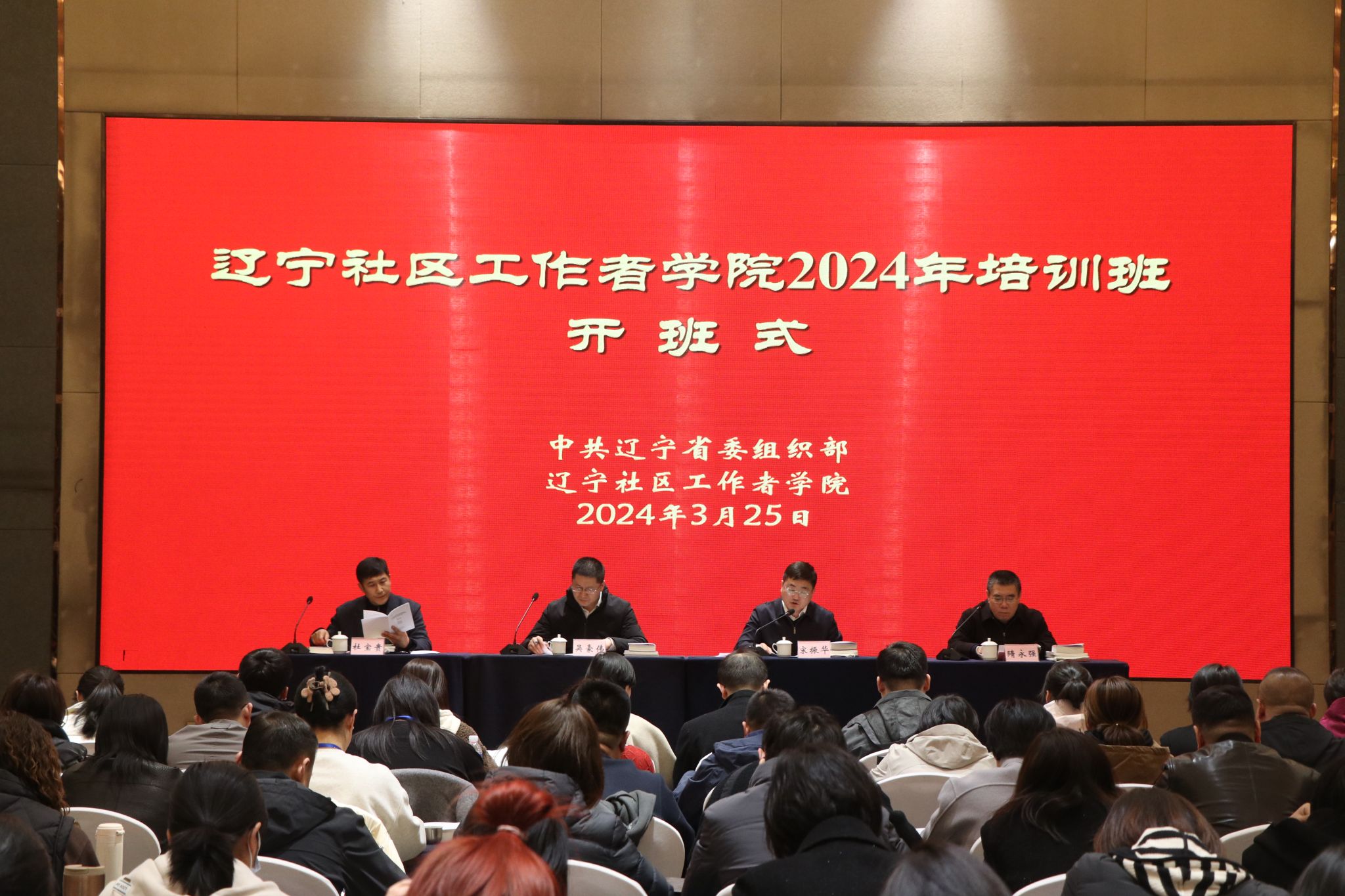 3月25日,辽宁社区工作者学院2024年培训班在东北大学国际学术交流中心开班。中共辽宁省委组织部部务委员、组织一处处长宋振华作开班动员讲话,东北大学党委副书记、纪委书记吴豪伟致辞。