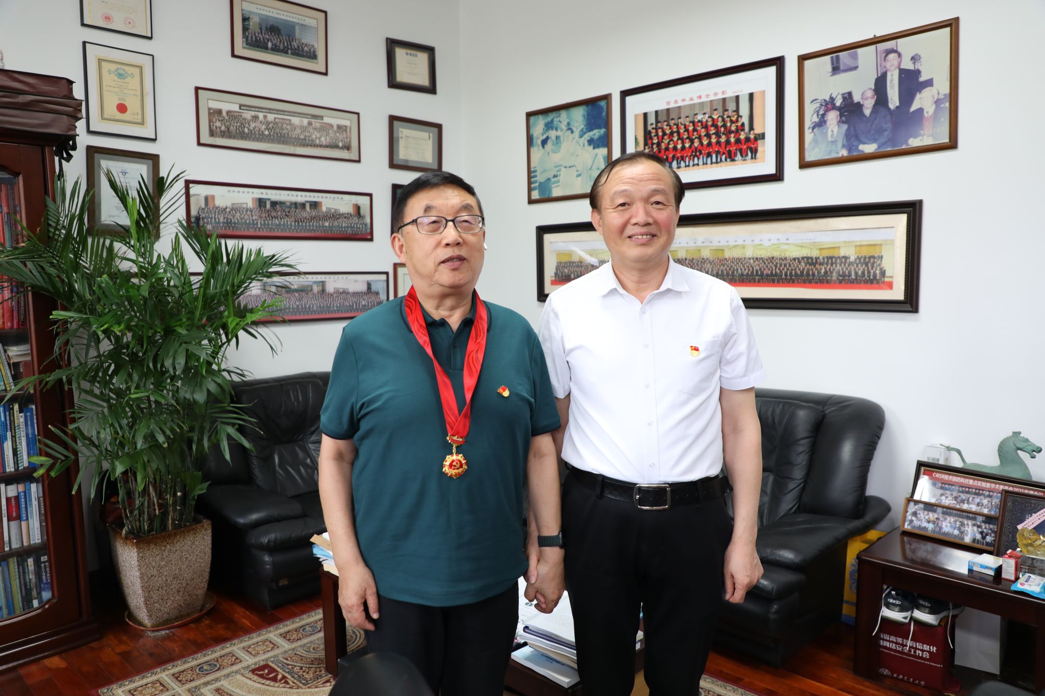 6月27日,校党委书记郭海在中国共产党成立103周年前夕,专程到建筑学馆207室为柴天佑院士颁发“光荣在党50年”纪念章,并看望慰问柴天佑院士。党委办公室、党委组织部相关负责人陪同看望。
