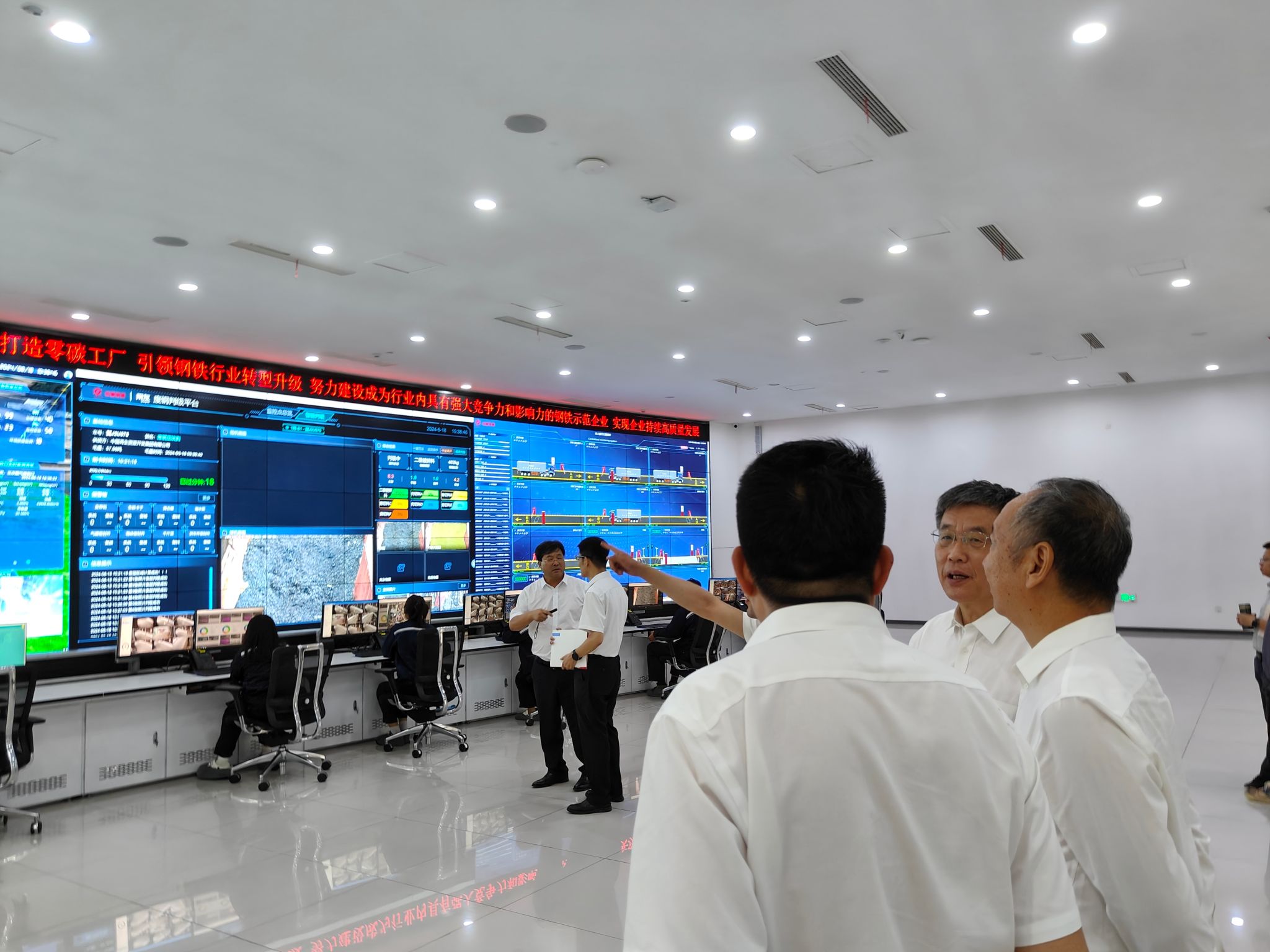 签约仪式后,东北大学参会人员参观了中首特钢智能管控大厅。冶金学院绿色智能特殊钢冶金研究中心姜周华教授听取了企业生产过程中遇到的困难和瓶颈,并从废钢处理、残余元素控制、钢水终点氮含量控制、开发高质量产品、数据驱动赋能、产品个性化智能定制等方面与企业进行了详细探讨,明确了项目团队和企业科技合作的方向和目标。