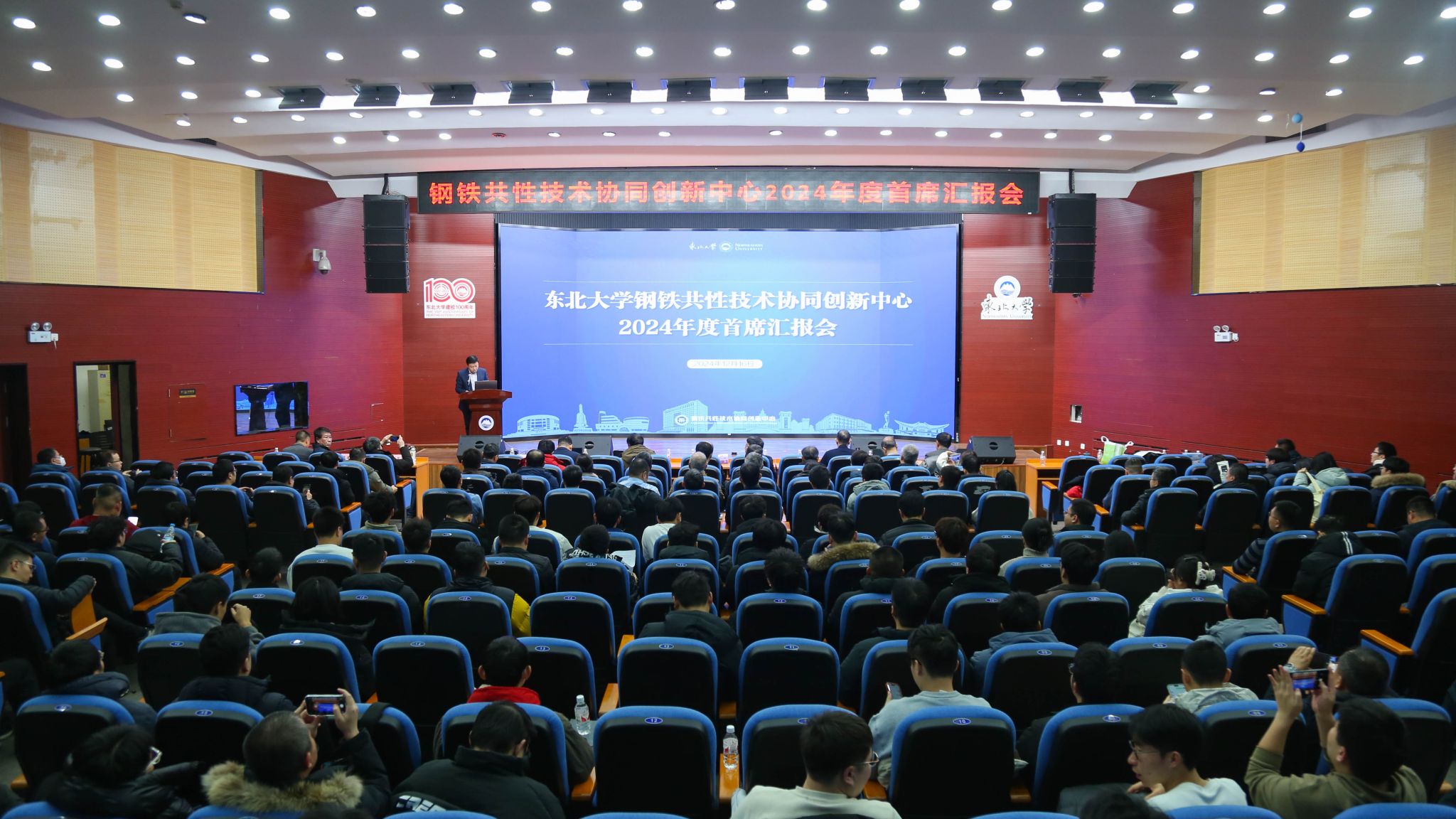 12月16日,东北大学钢铁共性技术协同创新中心2024年度首席汇报会在科学馆201建龙学术报告厅举行。中国工程院院士、钢铁共性技术协同创新中心主任王国栋,东北大学科学技术研究院副院长李畅出席报告会,中心方向首席、受聘人员、部分研究生参加汇报会。李畅主持汇报会。
