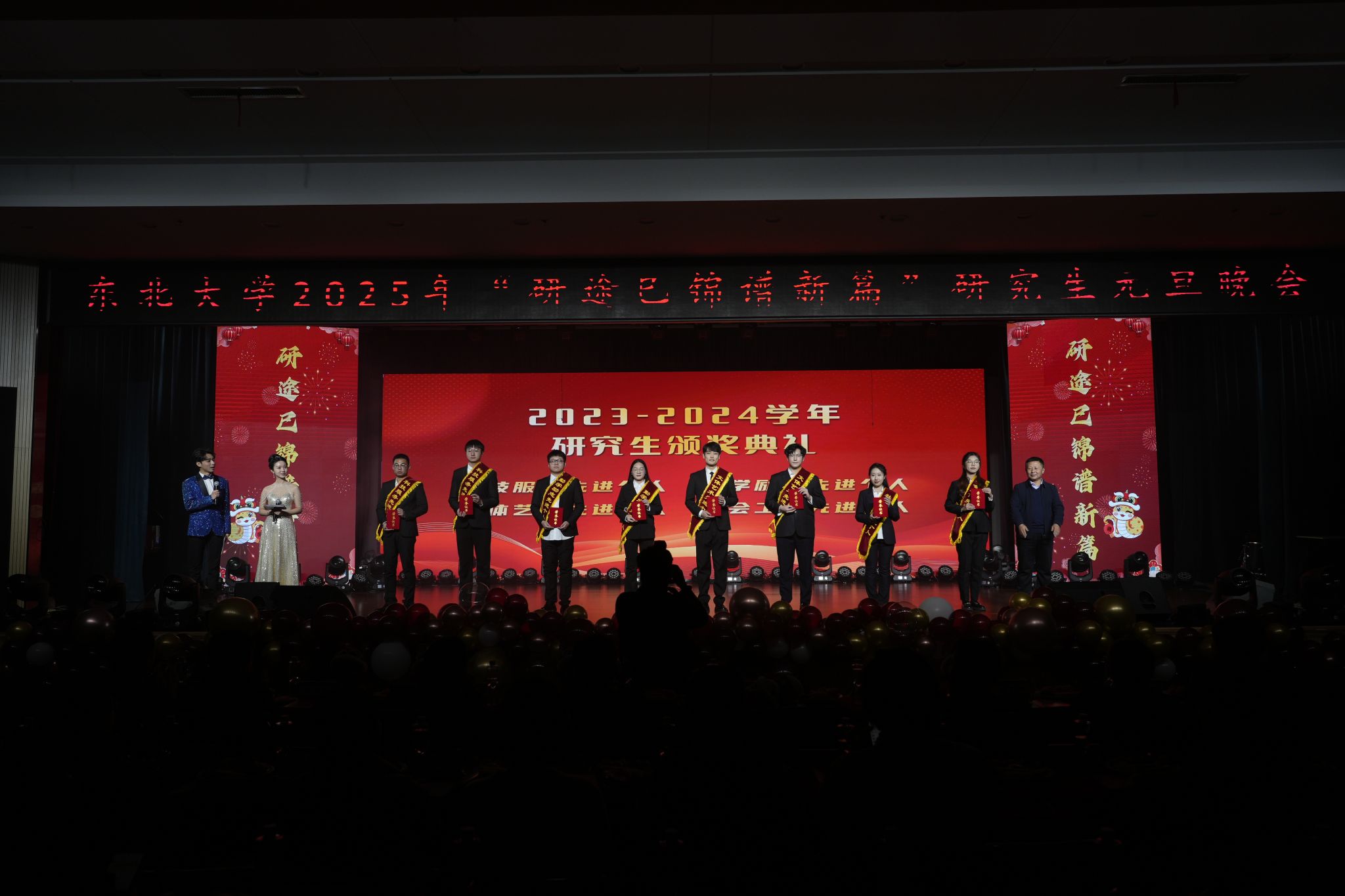 在颁奖环节,王辉为获得2023—2024学年东北大学研究生科技服务先进个人、勤学励志先进个人、文体艺术先进个人和社会工作先进个人的研究生代表颁奖。