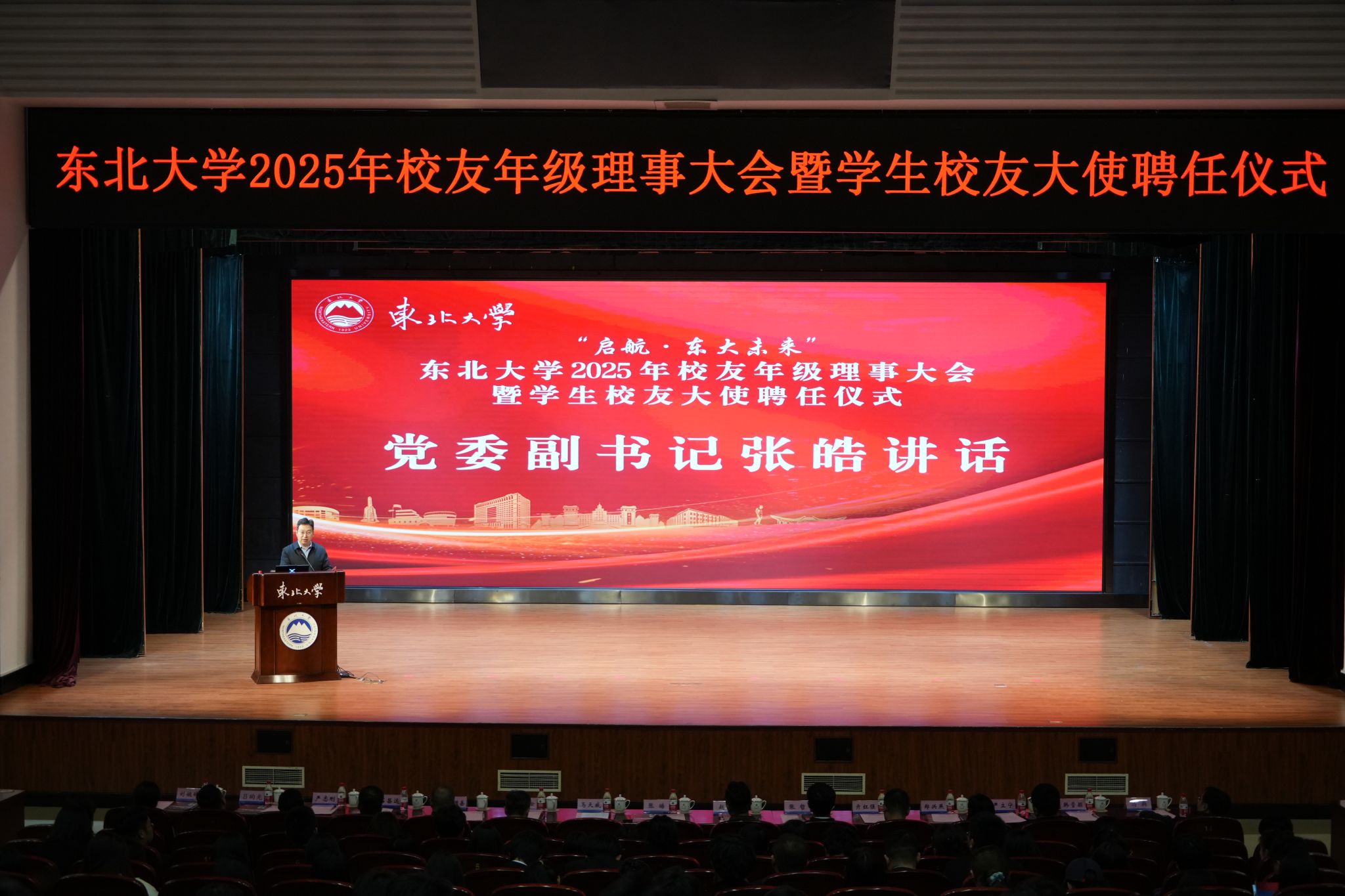张皓向新一届校友年级理事暨学生校友大使表示祝贺,并在东北大学建校102周年之际,对2025届学生校友大使和全体毕业生致以美好祝福。