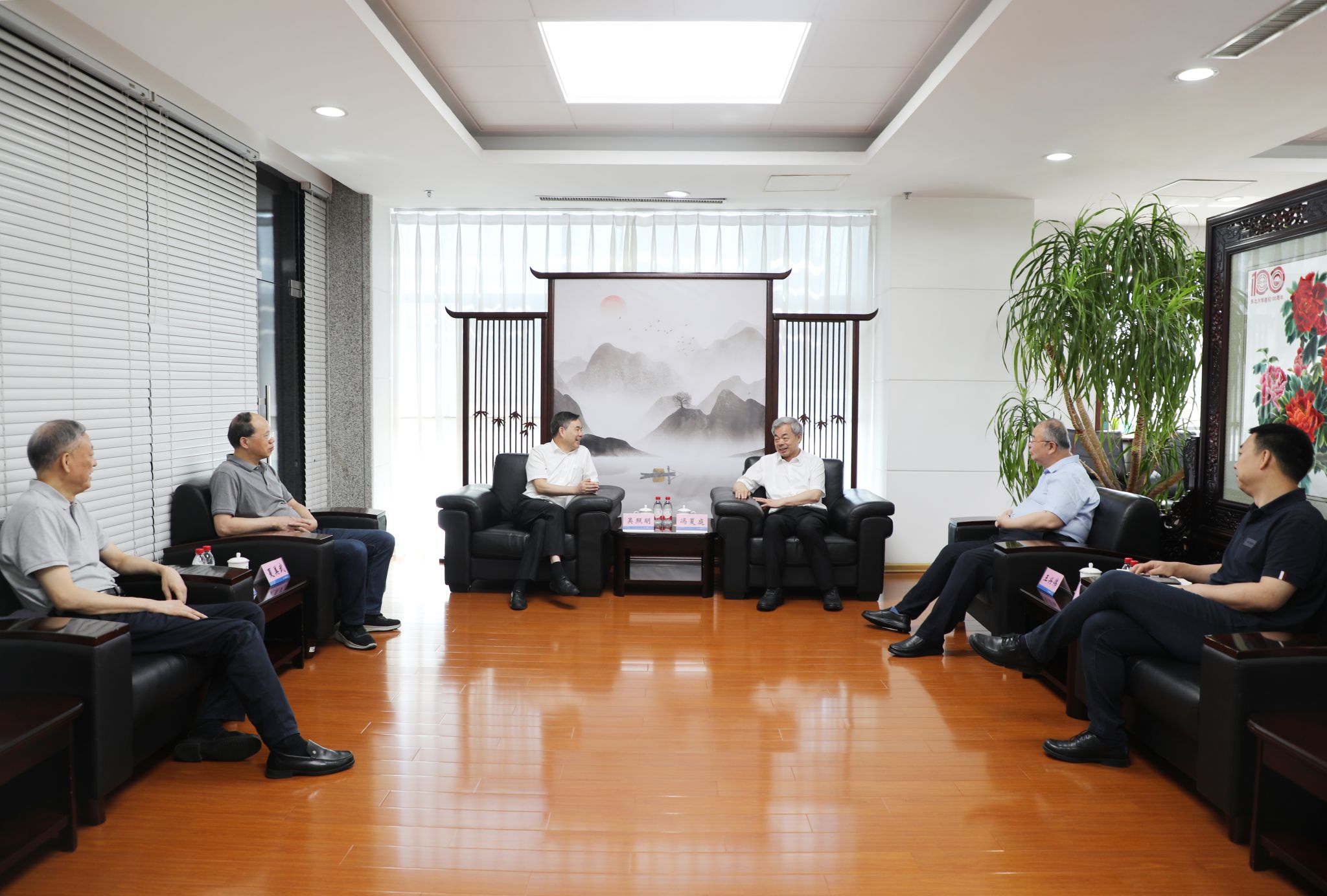 7月14日,安徽省铜陵学院党委书记吴照明,副校长夏美武,原纪委书记、铜陵市政府二级巡视员牛爱平一行访问东北大学。校长冯夏庭在主楼1501室会见吴照明一行,副校长王兴伟参加会见。