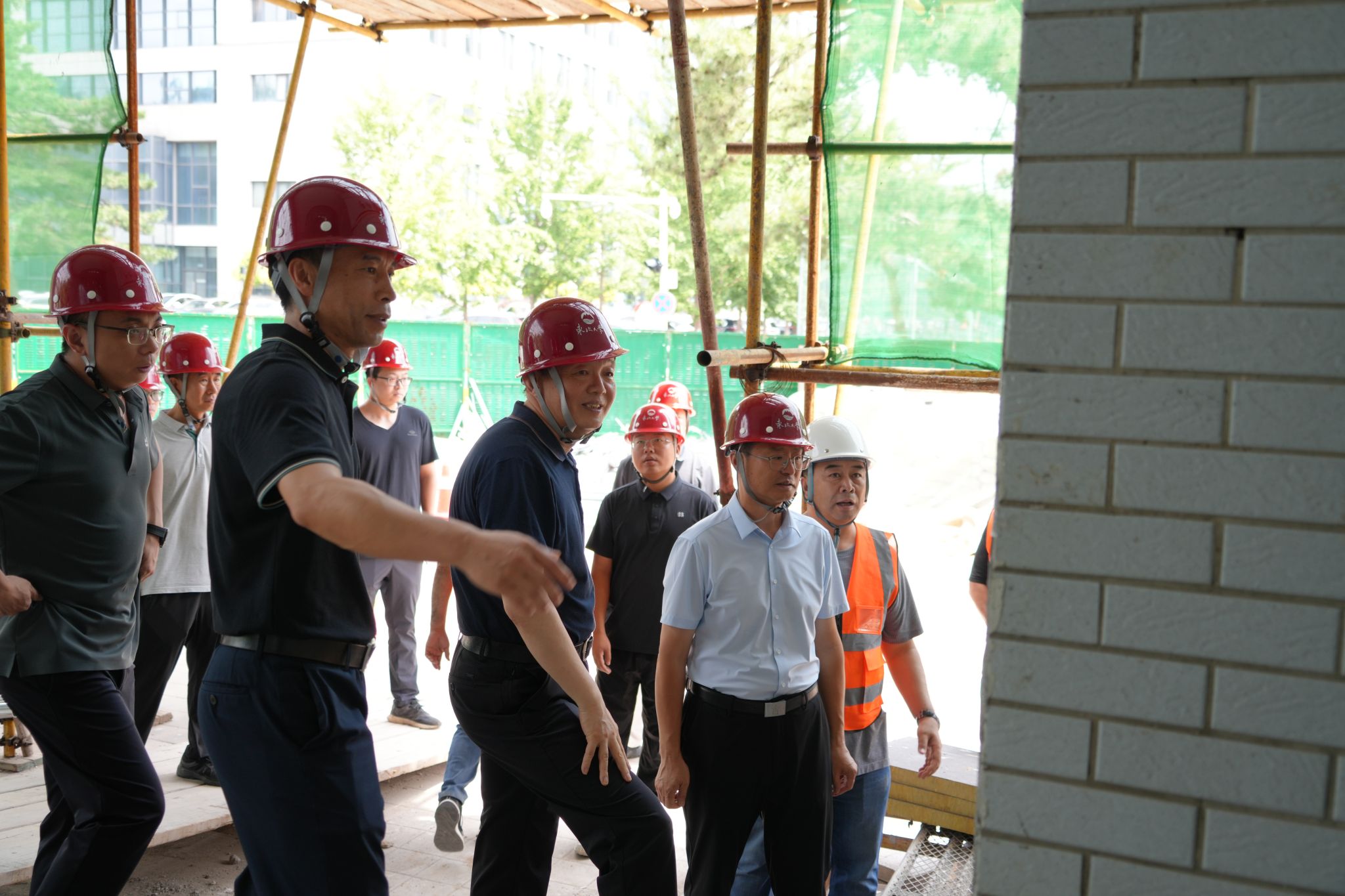 郭海走进学生3号宿舍和大学生活动中心等校园修缮工程施工现场,听取施工单位负责人对工程进展、施工质量及安全生产措施落实情况的汇报,对参建人员的辛苦工作表示慰问和感谢。郭海表示,暑期施工高温多雨,务必把安全生产放在首位,各个项目负责人要树牢安全意识,切实落实好安全生产主体责任,健全安全生产措施,强化各环节安全管理,确保施工人员和校园师生安全稳定。郭海强调,要严控工程质量,从材料进场到工序验收,每一步都要严格对标施工规范和设计标准,做好每一环节的质量把控,在坚守安全生产底线的基础上,以高水准和高标准严格管理工程项目施工,确保工程质量、施工进度和校园安全生产各项要求落地落实,筑牢校园安全稳定防线。