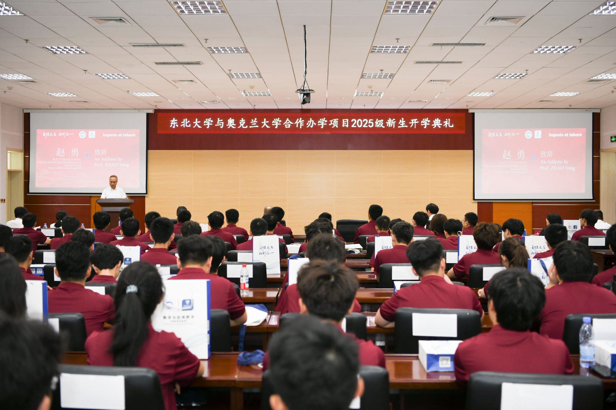 9月8日,东北大学与奥克兰大学合作办学项目2025级新生开学典礼在人文楼728室举行。东北大学校长助理、秦皇岛分校校长赵勇,奥克兰大学理学部副部长Sebastian Link,AMEG教育集团相关负责人,分校教务处、国际处、数统学院相关负责人与教师代表及合作办学项目全体新生参加典礼。
