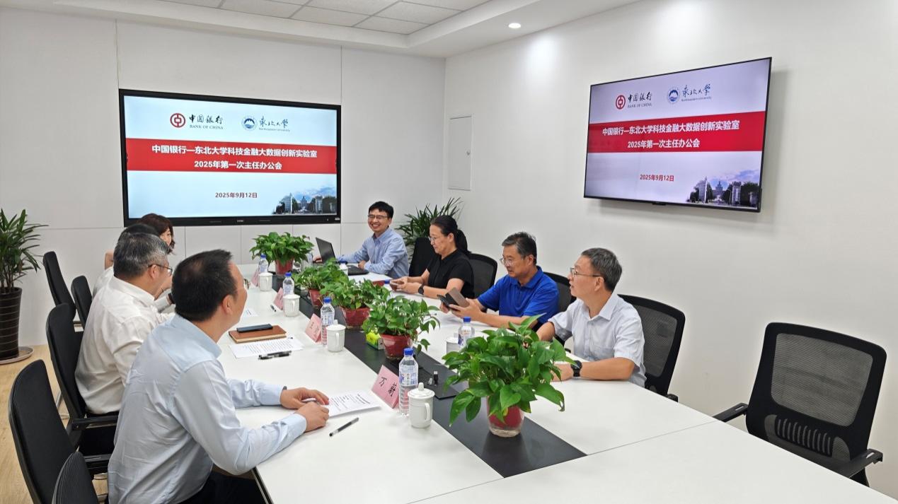 9月12日,中国银行—东北大学科技金融大数据创新实验室召开主任会议。中国银行辽宁省分行副行长王澍、行政事业机构部副总经理万蔚、沈阳分行副行长孙井泽、行政事业机构部业务主管牟经纬出席会议。东北大学副校长徐峰,实验室负责人徐建有、徐彬以及东北大学计划财经处相关负责人参加会议。