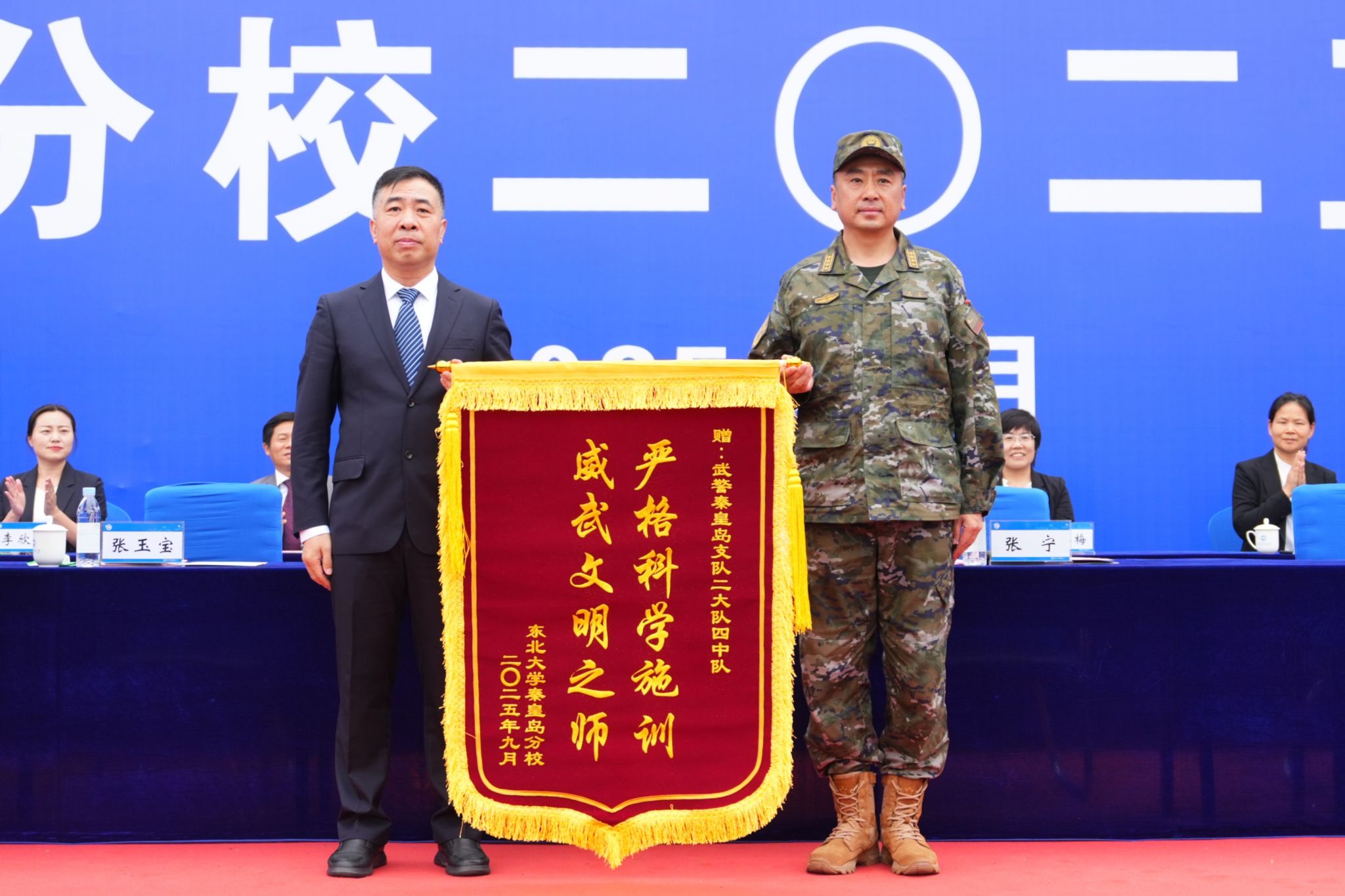 冯夏庭代表学校向分校2025级新同学表示热烈欢迎,向承训部队全体官兵的辛勤付出表示衷心感谢。冯夏庭指出,作为学校“一校两地四校园多基地”办学格局的重要部分,秦皇岛分校近年来深入学习贯彻习近平总书记给东北大学全体师生重要回信精神,依托自身区位优势并按照学校一体化协同发展战略布局,坚定走内涵式差异化发展道路,在人才培养、科学研究、国际合作与交流等方面取得了令人瞩目的办学成果、赢得了良好的办学声誉,为东北大学一流大学建设贡献了积极力量。