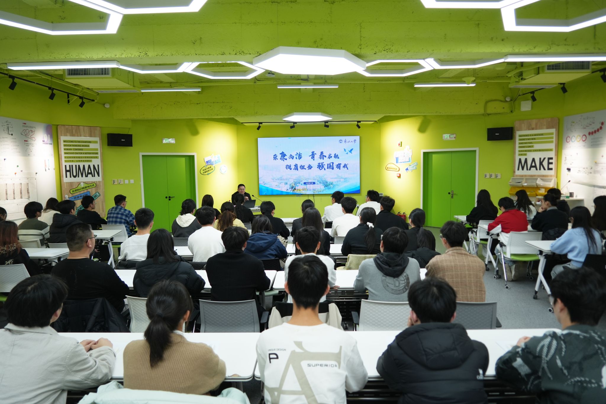 吴豪伟以“崇廉尚洁 青春启航 挺膺担当 强国有我”为题,从“廉脉悠长清风涤荡、廉洁底色初心为民、廉以立德洁以修身、做人做事做学问和青春誓言强国有我”等5个方面带领同学们深入学习了中华优秀传统文化中廉洁文化的历史演变、精神内涵和时代价值,深情讲述了中国共产党一路走来始终严明铁的纪律、永葆廉洁底色、坚守为民初心的光辉历程,回眸一代代东大人涵养清风正气,听党话、跟党走的感人事迹,结合自身经历嘱托同学们珍惜在校学习时光,在学会做学问的同时,学会踏实做事、诚信做人,希望同学们牢记习近平总书记给东北大学全体师生重要回信精神和对青年学生的殷切期望,以清正廉洁涵养青春本色,在知行合一中实现青春报国,以实际行动践行“请党放心、强国有我”的青春誓言。