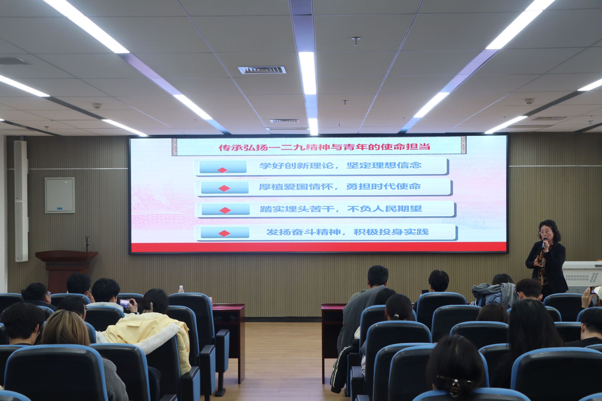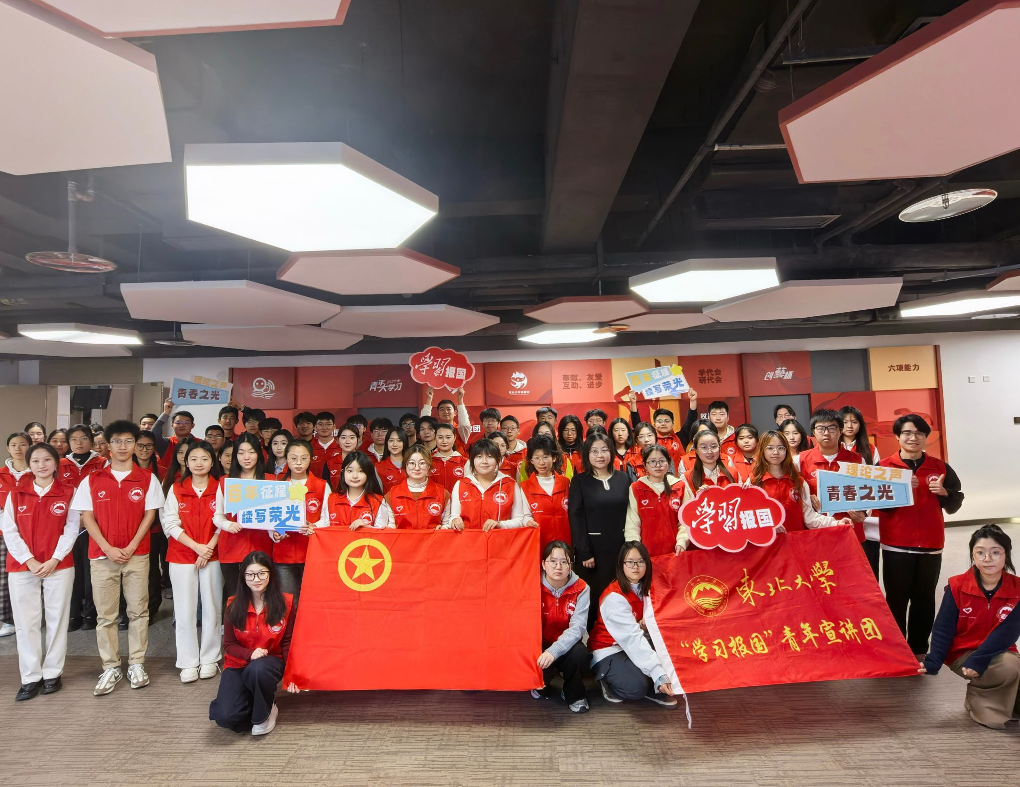 团委通过朋辈引领,激活大学生智能优势,彰显青年担当,实施高水平青春服务行动。东北大学“学习报国”青年宣讲团召开集体备课会,打磨宣讲稿件、制作宣讲“课件包”,走进思政课堂、团支部送课上门,开展专题宣讲90余场。外国语学院团委开展铭记“多语传情承校史红韵,青春共践东大荣光”活动,同学们用英、法、德、日四种语言开展纪念“一二·九”运动主题宣讲,宣传弘扬在抗战洪流中的流亡办学史与爱国担当。计算机科学与工程学院团委组织“传承红色志愿进社区”活动,面向社区居民讲述“一二·九”运动爱国故事,同步开展社区清洁和免费电脑维修服务。医学与生物信息工程学院团委在“一二·九”运动纪念日前后,组织青马学员深入社区、博物馆、中小学开展伟大抗战精神理论宣讲,彰显东大学子的责任与担当。体育部依托青马工程平台,组织学员开展“情暖园地,志愿有我”主题志愿服务活动,在“一二•九园”、刘长春体育馆等校园内红色文化地标开展清扫志愿服务,宣讲东大辉煌体育史。