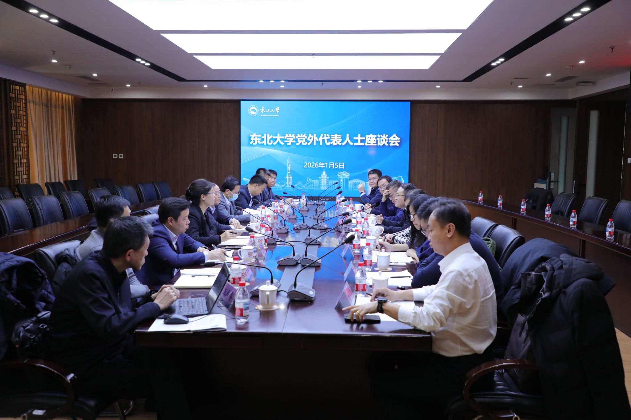 1月5日下午,东北大学党外代表人士座谈会在汉卿会堂308室召开。校党委书记郭海,党委副书记、副校长、统战部部长唐立新出席会议,学校部分党外政协委员、民主党派基层组织负责人、无党派人士代表及相关职能部门负责人参加座谈。会议由党委统战部常务副部长王立慧主持。