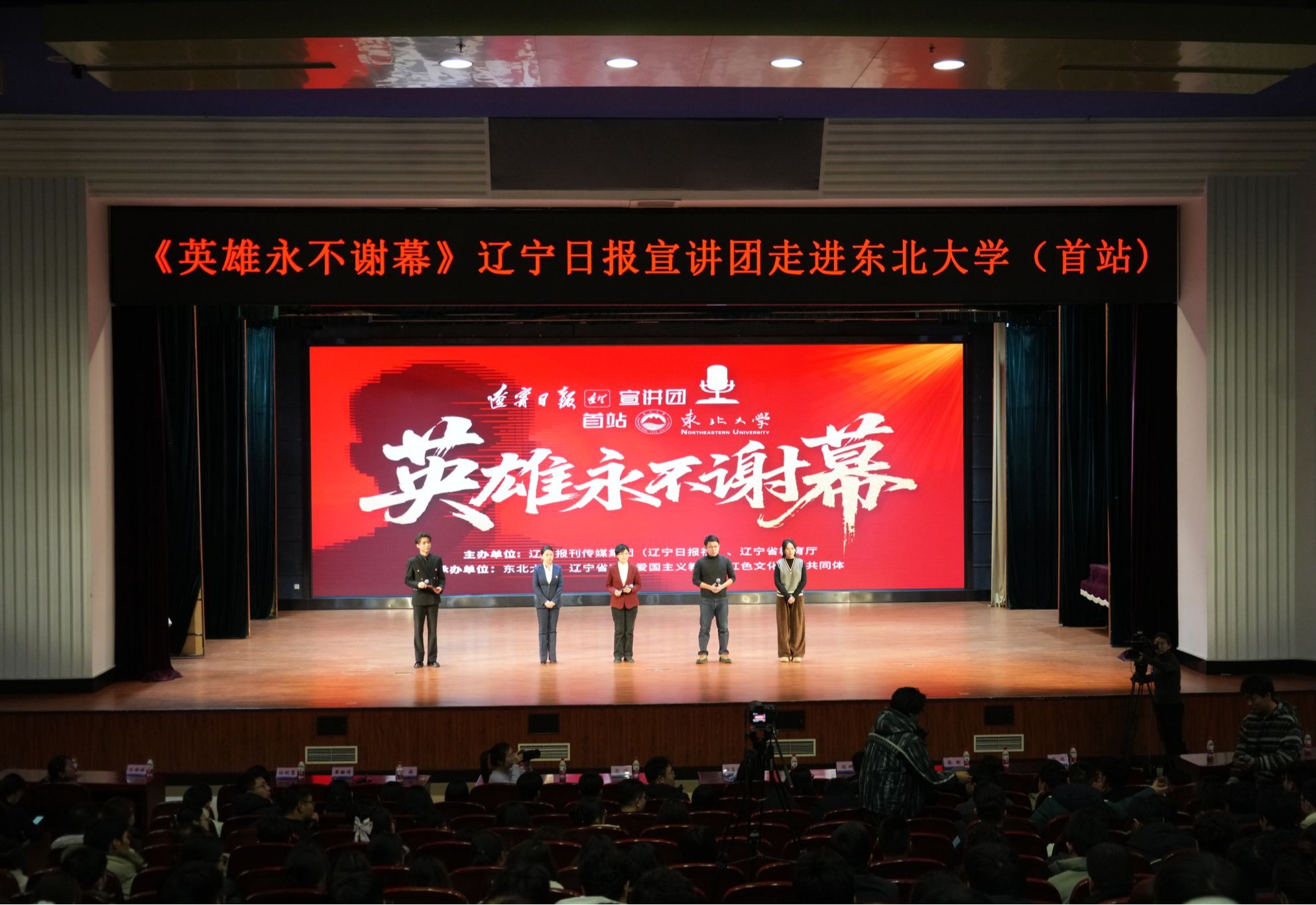 3月5日,由辽宁省教育厅与辽宁报刊传媒集团(辽宁日报社)联合主办,东北大学、辽宁省高校爱国主义教育和红色文化育人共同体承办的同上一堂思政课——《英雄永不谢幕》主题宣讲活动在东北大学汉卿会堂蔡冠深报告厅举行。辽宁日报高级记者、第十八届长江韬奋奖获得者高爽,辽宁日报记者孙明慧、黄瀚博、栾溪作为宣讲嘉宾与广大师生一起,在校史的厚重与故事的鲜活中,追寻英雄印记,感悟英雄精神传承。辽宁报刊传媒集团(辽宁日报社)党委常委、副总编柏岩英,辽宁日报辽望融媒体中心运营部主任张昕,东北大学党委副书记张皓出席活动,思政课教师代表、辅导员代表和近500名学生参加活动。