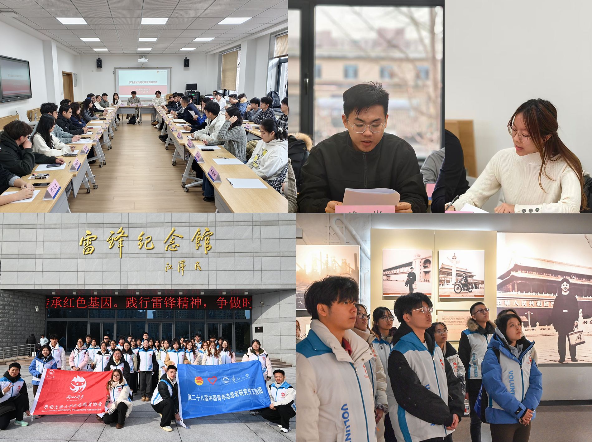 以学铸魂,感悟榜样力量。将理论学习融入主题团日、理论宣讲中,组织校院两级志愿服务骨干前往抚顺雷锋纪念馆开展实地研学,开展校院两级学生组织骨干“向金城龙同志学习”专题研讨会,面向全校同学开展《雷锋日记》读书感悟征集活动,宣传阐释好新时代雷锋精神的时代内涵、文化内涵和实践传承。