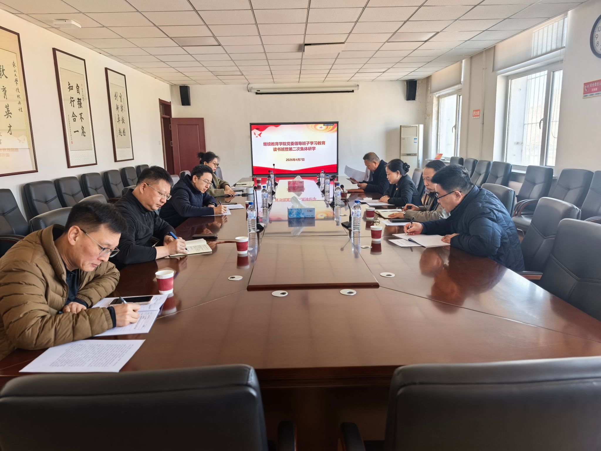 4月7日,继续教育学院党委在教学二馆212室开展树立和践行正确政绩观学习教育读书班第二次集体研学。学院党委书记赵彩清主持学习,读书班全体成员参加会议。